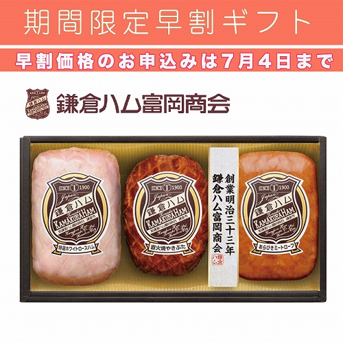 ●内容:特選ホワイトロースハム380g、直火焼やきぶた・あらびきミートローフ 各200g