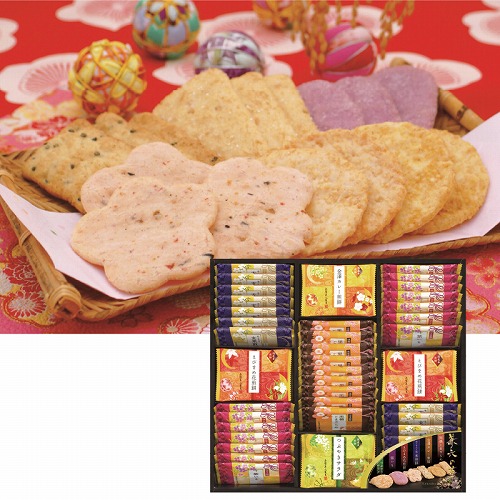 ●内容:黒ごま入り玄米煎餅・紫いも 各14、金澤カレー煎餅・つぶやきサラダ 各6、えびまめ花煎餅×12、黒糖ごまざらめ×9