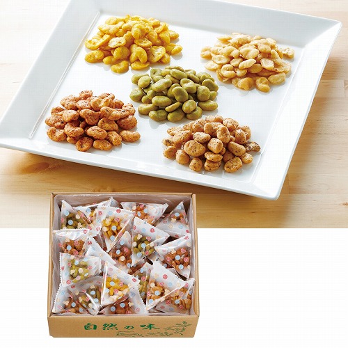 ●内容:黒トリュフそら豆・七味豆・わさび豆・黒胡椒豆・カレーそら豆 各15g×7