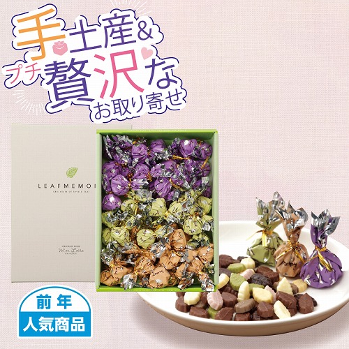 ●内容:リーフメモリー[緑(抹茶・ダーク・ミルク)・橙(モカ・ホワイト・ミルク)・紫(ぶどう・オレンジ・ミルク) 各20]