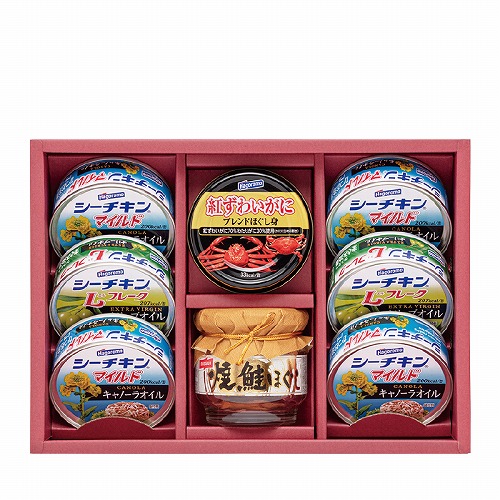 ●内容:シーチキンマイルドキャノーラオイル70g×4、シーチキンLフレークオリーブオイル70g×2、紅ずわいがにブレンドほぐし身55g、ニッスイ焼鮭ほぐし50g