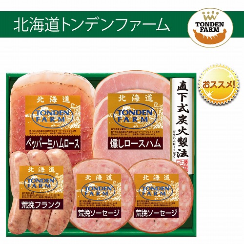 ●内容:燻しロースハム(スライス)60g、ペッパー生ハムロース(スライス)40g、荒挽フランク150g、荒挽ソーセージ70g×2