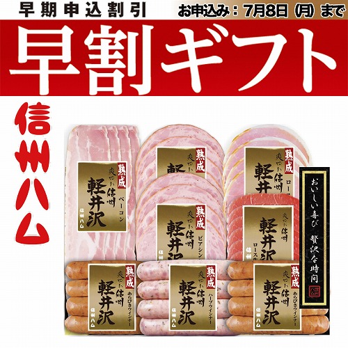 ●内容:熟成あらびきウインナー75g×2、熟成ハーブウインナー75g、熟成ビアシンケン60g×2、熟成ベーコン・熟成ロースハム 各55g、ロース生ハム30g
