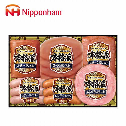 ●内容:スモークハム152g、ロース生ハム27g、スモークボロニア105g、あらびきステーキ72g、特撰あらびきウインナー・特撰ホワイトウインナー 各66g