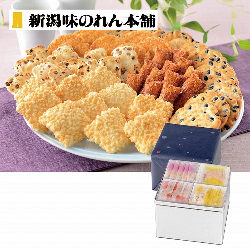 ●内容:田舎おかき醤油味×11、黄金揚げ×6、揚もち×10、越乃豆もち・黒大豆せんべい 各14